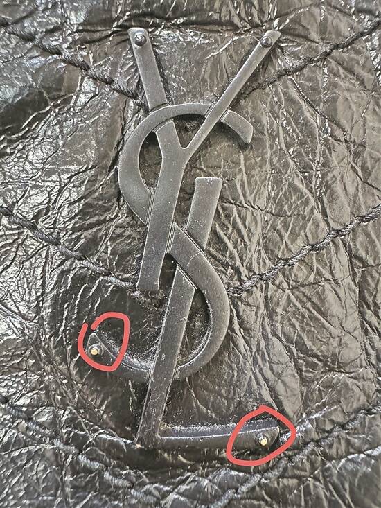 商家给邓女士提供的收货照片,图上的圣罗兰包的logo有掉漆 图/受访者提供