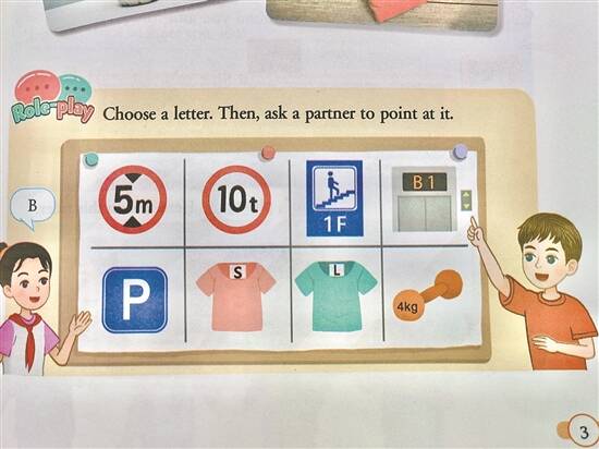 关于目前新教材的变化,一是更加注重生活性,将许多内容安排进了特定的情境。比如第一单元学习字母,就从身边的地铁ABCD出口、停车场的标志P以及衣服SML码等方式入手。二是教学板块转向任务型。现在的教学听说读写各板块区分得很细致,会给学生布置清晰的任务,对老师来说备课也有更明确的方向。