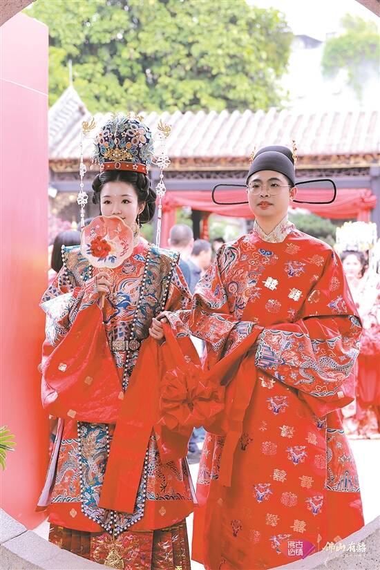 游船接亲、花轿巡游、梁园内“喜结良缘”……11月10日,9对新人在佛山古镇体验了一场“糖分满满”的岭南风尚婚礼。整场活动串联起了多处历史文化地标及街巷,以浪漫的方式打开了连接佛山古与今的奇妙之门,是佛山古镇甜蜜产业蓬勃发展的一个美好注脚,也为佛山古镇“永不落幕的庙会”和贯穿四季的民俗盛宴做了一次精彩代言。