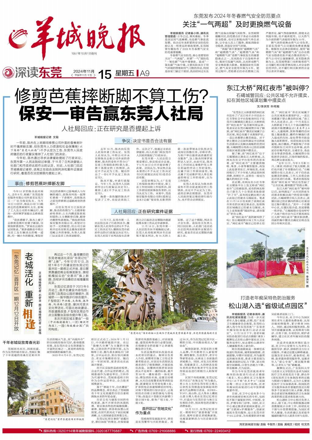 修剪芭蕉摔断脚不算工伤?保安一审告赢东莞人社局