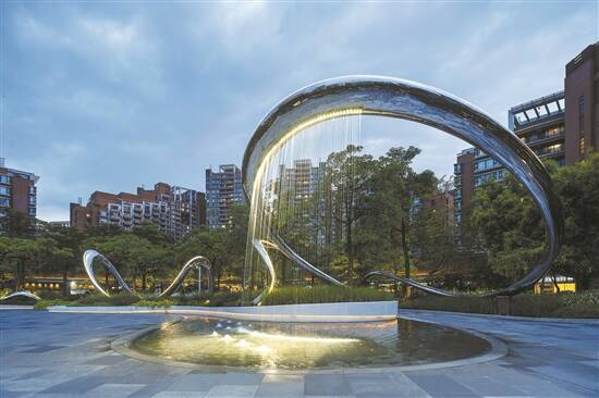 广粤天地中央园林的艺术装饰增添了社区艺术氛围