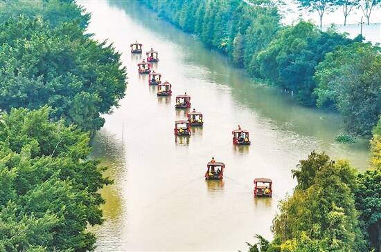 据了解,“斗门水上婚嫁习俗”集体婚礼活动是珠海市斗门区的文化品牌活动,在珠海乃至粤港澳大湾区颇具影响力。此次水上婚礼路线,以莲洲镇岭南大地百草园为起点,串联石龙村、上栏村,抵达东湾村,新人们引领网络观众沉浸式体验独特的斗门水乡风光,感受乡村变化和非遗的魅力。新人们在这条9.9里长的浪漫婚礼水道上缓缓驶向幸福彼岸,寓意长长久久,再现疍家婚礼浪漫。