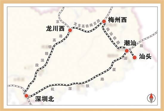 龙龙高铁梅龙段是国家中长期高速铁路网八纵八横主通道区域连接线和《国家综合立体交通网规划纲要》长三角至粤港澳主轴的重要组成部分,是广东省首条全额投资建设、自主审批的时速350公里高铁项目,正线全长98公里,途经梅州市、河源市,全线设梅州西、兴宁南、五华、龙川西四个车站。