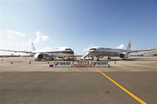 亮点介绍:8月28日,中国国际航空公司和中国南方航空公司在中国商飞总装制造中心浦东基地同时接收首架C919飞机。在随后的9月10日和9月19日,国航和南航的首架C919分别顺利完成首航。至此,中国三大航空公司已全部开启了国产大飞机的商业运营。作为全球首家商业运营C919、也是目前C919运营规模最大的航空公司,东航C919机队已达9架,累计共订购105架。东航C919飞机自2023年5月28日商业首航以来,到2024年11月21日,已累计执行商业航班超5500班、承运旅客超过75万人次。