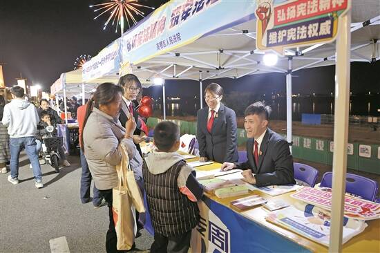 11月30日晚上,高明法院在高明区普法办的统一组织下,在滨荷Park生态文创园举办“法治集市”活动。活动通过有奖问答+集赞打卡的方式开展,瞬间吸引了大批市民热情参与,同时法官也为市民提供法律咨询服务,面对面解答疑问。活动中市民既能玩又能学,让法治学习更有温度、更有“烟火气”。