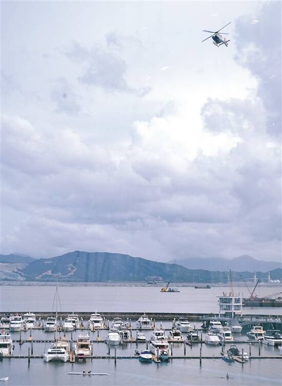 直升机在深圳电信和中信海直携手打造的数字化塔台指引下掠过海面
