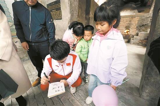 李越宏在南风古灶给小粉丝签名