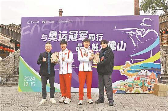 与奥运冠军同行,品味魅力佛山。12月15日、16日,巴黎奥运会射击男子25米手枪速射项目金牌得主李越宏、巴黎奥运会射击男子步枪50米三姿项目金牌得主刘宇坤两位冠军莅临佛山,进行了为期2天的走访。从南风古灶到宏陶陶瓷博物馆、黄志伟艺术馆,再到佛山市南海人民医院、佛山职业技术学院和季华中学。2天行程里,两位冠军“管中窥豹”对佛山这座广府名城的产业、文化、教育展开了解,也与各界群众打成一片——奋勇拼搏的体育精神和博大精深的岭南文化在2天的行程中水乳交融。