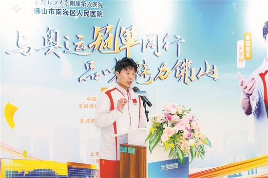 12月16日上午,华南理工大学附属第六医院(佛山市南海区人民医院)(以下简称“南医”)门诊大堂迎来两位特别来宾——巴黎奥运会冠军李越宏、刘宇坤现身现场,他们结合自身经历带来精彩分享会,与医护工作者们面对面交流。