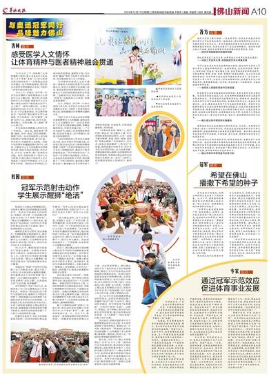 广东省文化学会会长、广东省政府参事室特约研究员、中国晚报协会学术委员会副主任周建平表示,能让奥运冠军多到各地市走走,对于奥运冠军和各城市都是一种“双赢”。