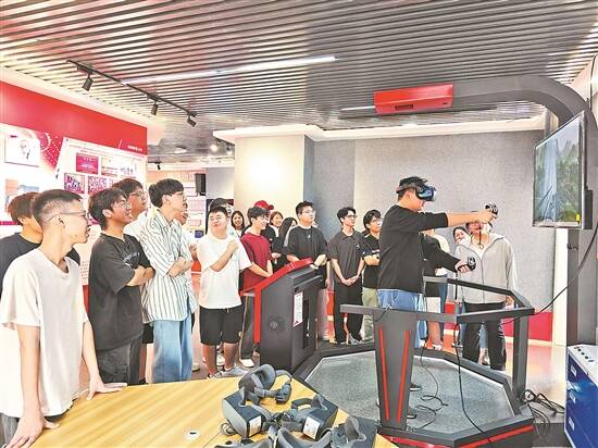 在该校清远校区,2024年教育部首批红色文化弘扬基地“云馆双栖——红色文化弘扬展教研一体化基地”内,科技感满满,学生可利用VR技术还原体验嘉兴南湖红船等历史场景。自基地建成以来,服务省内及周边师生80000余人,已成为省内及周边地区大中小学红色文化培育与弘扬的热门打卡地;