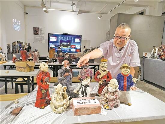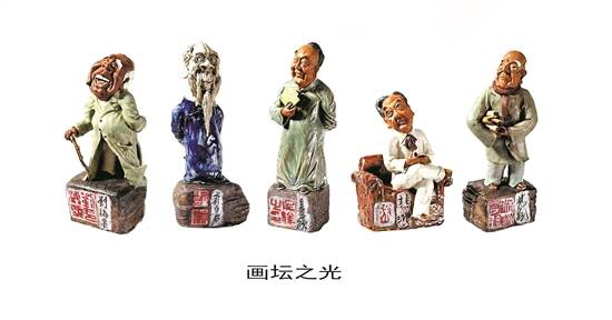 在锃风艺术中心,2000多件原创泥塑作品按照不同系列、不同类别整齐摆放,让人感叹于作品数量之多的同时,更敬佩王增丰充沛的创作活力和源源不断的艺术想象。如《丝路放歌》是王增丰的得意作品,塑造了古丝绸之路沿线十几个国家的人物;《百年巨匠》系列将鲁迅、齐白石、林风眠、李可染等文化巨匠的形象塑造得栩栩如生;《罗汉百态》系列通过人物的表情、服装、姿势、道具等传神地表现出人物的性格特征。“做漫塑要把握好真实和夸张的尺度,变形要适度,最起码让大家一眼看出来是谁,塑人的话要把他的性格、神态表现出来,把人最有特点的地方放大。”王增丰说。