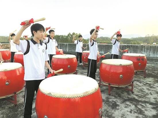 湖镇大鼓在湖镇中学掀起热潮,大鼓队每周都开展训练 受访者供图