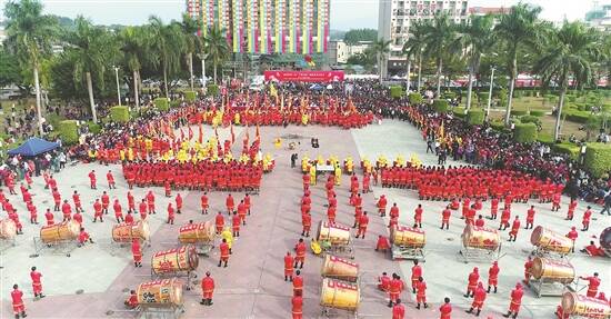 锣鼓一响,喜事共享。民间锣鼓队精英云集,近千面锣鼓蓄势待发,是为了迎接即将举行的惠州市湖镇镇第三届“千锣百鼓”非遗文化旅游美食节。时隔7年,曾创下基尼斯纪录的“千锣百鼓”再度响彻湖镇,备受关注。
