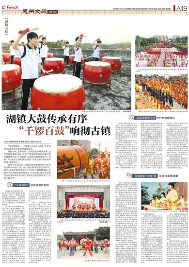 值得一提的是,湖镇大鼓在湖镇镇普及极广,传承脉络清晰,青少年传承有继,十分难得。今年2月,湖镇大鼓被列入惠州市第八批市级非物质文化遗产代表性项目名录。