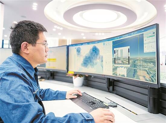 工作人员远程调度机巢内的无人机开展输电线路巡视 黄海鹏 摄