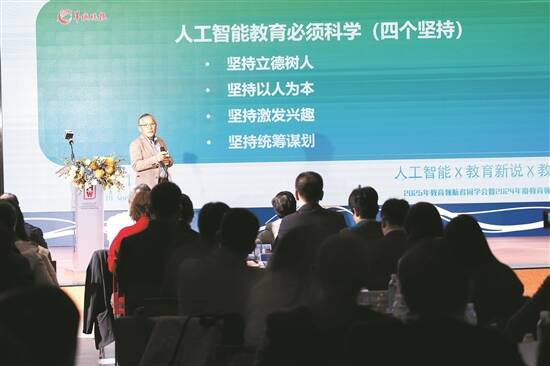 “技术浪潮席卷而来,避无可避,作为教育工作者,应当积极‘踏浪而行’。”广州市黄埔区华外同文外国语学校双语部中学校长秦金华表示,中小学教育在拥抱人工智能技术之余,更应当避免陷入被技术“裹挟”的困境,教育工作者需进一步思考教育的“变与不变”。秦金华指出,要把握技术工具之“变”,把AI作为提升师生、家长素质素养与教育教学能力的切实抓手;技术浪潮下更要坚守教育人的本质情怀,落实“立德树人”这一始终“不变”的教育使命。