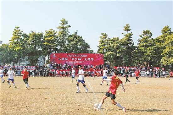 近日,2025年梅江区城北镇“贺岁杯”足球赛在梅州市梅县区技工学校鸣哨开赛。梅江区委常委、副区长陈志文,区委常委、政法委书记林科,副区长黄振宁、黄晓航,梅州开放大学副校长王修,梅州市足协副主席杜光宁,梅州市足球发展基金会秘书长温巧麟,城北镇党委书记陈振江,梅江区文广旅体局局长魏洪涛,梅州市东辉足球俱乐部负责人姚望卿等领导嘉宾出席开幕仪式。