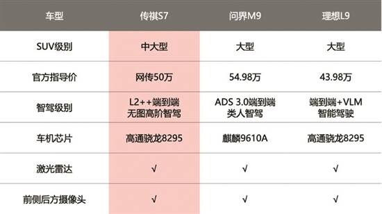 为了全面刷新消费者对于传祺的认知,广汽研发人员告诉记者,全面对标当前的领先者,并以更领先为出发点。比如豪华对标奔驰奥迪,舒适对标理想,智能对标问界,因为“与强者为伴,才能成为强者的一员”。除此以外,传祺S7的底盘调教延续了一贯的可靠与稳健,被网友称为大师级的“高级名片”。至于搭载插电混动系统,是广汽的优良传统,也属于广汽自主研发的先进成果。具体而言,S7提供插混+增程双模驱动,随时可以切换。同时配备智能电四驱,显著提升车辆性能。加上有了L2++智能驾驶辅助,看得清,看得远,看得懂。这种高阶智驾能力,来源于搭载了车顶雷达、前侧后方等多个摄像头,匹配广汽自研的端到端无图智驾系统,无须高精地图也能实现智能驾驶,高速零接管、城区放心用,实力足以比肩第一梯队。