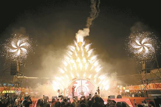 而作为陈村花市的地标桔塔,直径13.8米,高16.8米,16层的全球最大年桔塔回归,今年的桔塔加上了祈福功能,游客可在桔塔下许下一年的美好愿望,祈求一年顺风顺水。夜晚的桔塔还会有“火树银花”惊喜掉落,等待市民游客的打卡。