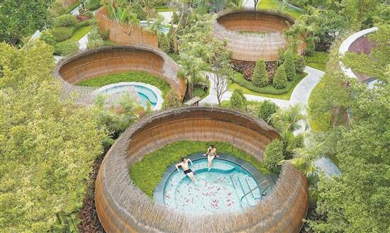 在广州从化、清远佛冈等地,热腾腾的广东温泉驱散着冬日里些微的寒意,丰富的温泉娱乐设施更是尽享奢华待客之道,人们尽情享受着温泉浴带来的南国特色康养之旅。