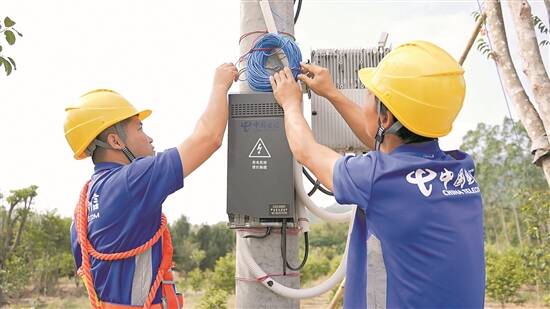 中国电信工作人员正在安装设备