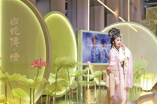 1月20日,广州太古汇“粤韵新话”乙巳蛇年新春展开幕,为公众带来一场别开生面的广府文化盛宴。此次新春展,广州太古汇特别选择粤剧这一岭南文化瑰宝,携手广东珠影影视制作有限公司与广东粤剧院院长曾小敏,共同打造粤剧文化主题展,通过多元媒介的视觉表达,展现粤剧电影《白蛇传·情》中影视视听美学与岭南戏曲艺术的碰撞与交融。青年艺术家吴鸣受邀为该主题展布展,太古汇L3层南玻璃盒在他的巧思下,被打造成一座充满东方写意之美的“穿粤”空间,通过虚实结合的空间设计手法,融合中式传统建筑美学风格,生动还原了《白蛇传·情》中的电影场景。同时,展览结合多个视觉影像、戏服华裳、趣味粤歌互动,以及珍贵的点缀戏剧舞台珠宝和电影手稿,为公众开启了一场与粤剧数百年璀璨历程的深入对话。