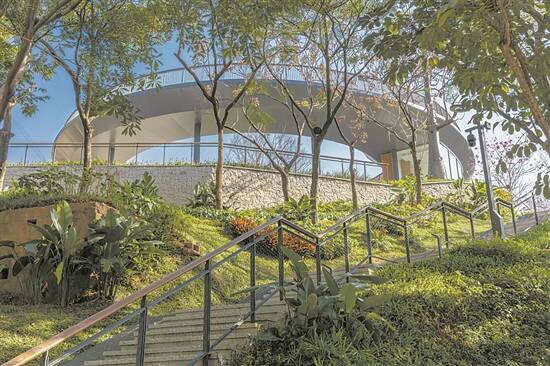 环山客厅位于红岗公园东马岭山顶区域,为红岗公园重要的城景看台,包含270°观景台、环山休闲厅、中央草坪等内容。环山客厅是红岗公园从城市走向自然的全景环廊,可拥抱城市与自然,提供极佳的罗湖天际线观景体验和休憩空间。