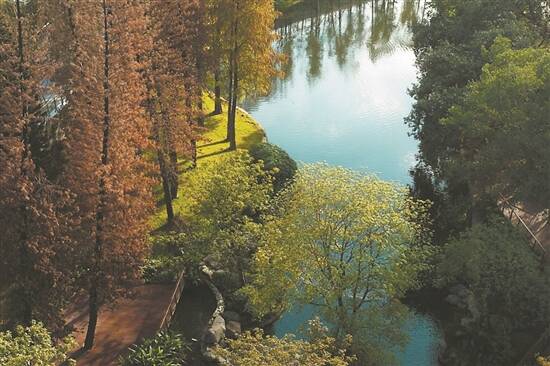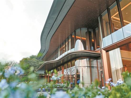 位于天河区世界大观的越秀·观樾,近期因项目内层林尽染的落羽杉出圈了。同样让人赞叹的还有伫立在日月双湖旁的售楼部,设计师将自然绿意与静奢风格相融,中式风格的建筑让湖居生活有了具象的表达。