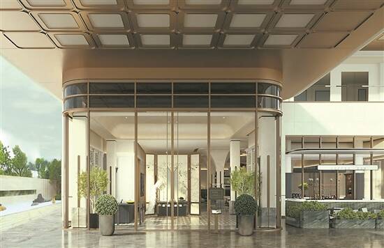营销中心的棕金色流畅线条和清透外立面