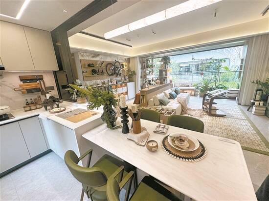 “硬核”产品力是华发越秀·和樾府实现热销的重要原因之一。该项目主力户型面积130-270平方米,以“超配”设计提升传统高端住宅的居住体验。例如,建筑面积约270平方米的压轴户型采用两梯两户纯板式结构,层高3.3米、窗地比35%,搭配8.6米全景阳台,景观面可同时俯瞰万博CBD天际线与中央园林泳池,实现了“景观资源最大化占有”。