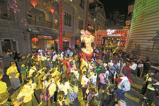 二月二,食角仔。3月1日,佛山市高明区更合镇第十二届角仔民俗文化节在竹沙岛正式启动,现场包角接福、非遗展示、醒狮表演以及美食集市多个精彩环节轮番上演,更有餐桌大的巨型角仔亮相,活动共吸引超4000人次参与,带动现场消费约80万元,打出了以民俗节庆促进文旅消费的“组合拳”。