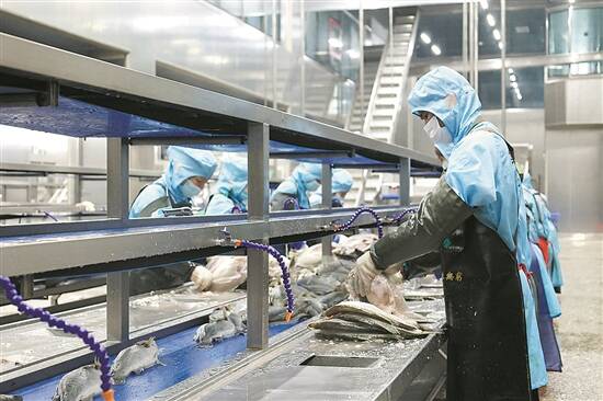“今年我们增加了一条生产线,有新设备的加入,让我们的生产效率大幅提高,日产量最高可达2万斤。”祺海水产负责人杨映辉表示,今年公司在原有客户的基础上,与三家销售商签订了3000万元的全年订单,直接带动企业年产值翻倍增长。“按最保守的估计,今年的产值肯定比去年翻一番。”