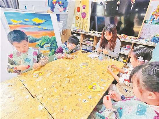 在画室里,可以看到许多孩子们捏出来的泥塑作品,虽然略显生涩,但每一件都透露出孩子们花费的心思。“泥塑很容易上手,两岁多的孩子也能凭借自己的想象力创作出作品,并从中体验到动手制作的成就感。”庄敏说。