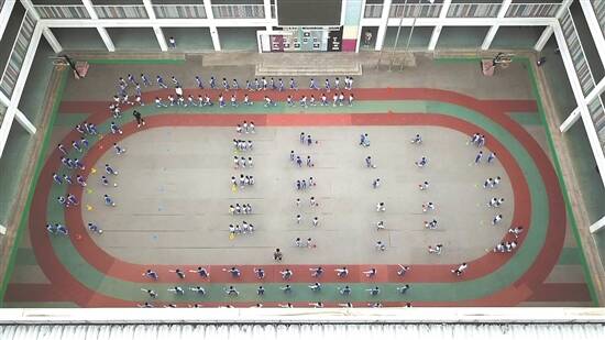 泰宁小学展现出“小场地,大智慧”,创新实施科学划块管理。在课程编排上,巧妙安排体育课与其他课程,实现动静结合,确保同一节课有4至5个班级能在划定区域上体育课。场地划分时,将操场细分为4至6个区域,供不同年级开展体育教学。同时,建立有序轮换机制,保证每个班级每周都能在不同区域体验多样化体育活动。在教学内容设计上,体育组教师结合场地、个人专长与学生特点,精心设计韵律操、跳绳、往返跑、足球等项目,让有限空间发挥最大体育教学效益,切实落实“每天一节体育课”。