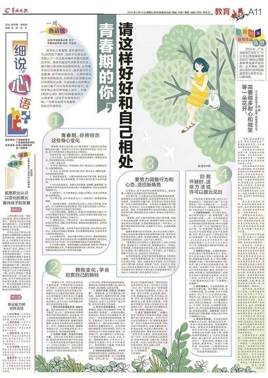 2025年政府工作报告提出,普及心理健康教育。一年前诞生的羊城晚报“细说心语”栏目,正是在做着普及心理健康教育。这一年来,它如同一盏明灯,照亮了青少年心理健康教育的道路,为学生、家长和教师们提供了丰富的心理支持与指导。