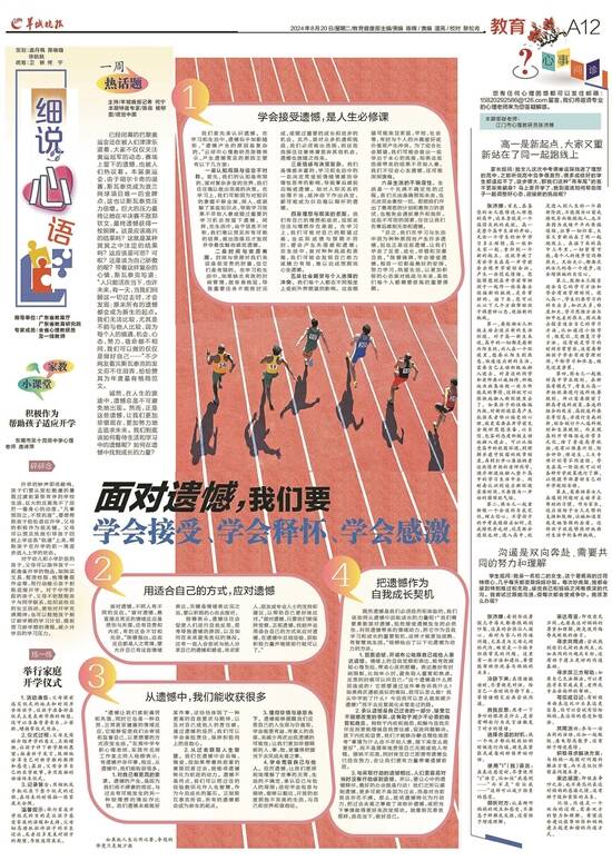 ●学会接受遗憾,相信一切都是最好的安排,努力学习,热爱生活,以更加积极的心态面对挑战与未来,这是我们每个人都需要修炼的重要课题。