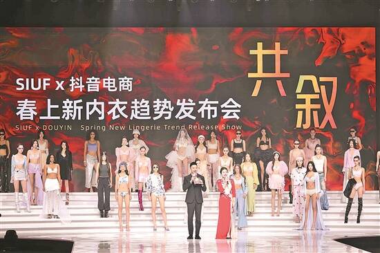 作为第20届SIUF中国国际品牌内衣展的年度开幕大秀,“春上新内衣趋势发布会”由深圳市内衣行业协会联合抖音共同打造,抖音全网首次推出内衣类目“即播、即秀、即卖”全新模式。本次发布会上,维多利亚的秘密、安莉芳、曼妮芬、Bananain蕉内、ubras、芬狄诗、IMIS爱美丽、HUXI乎兮、BODYWILD等众多知名品牌新品发布,为消费者呈现了一场美轮美奂的时尚新品发布大秀。