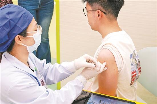15日上午11时许,梁先生完成了九价HPV疫苗接种。他14日得知男性也可以接种进口9价HPV疫苗,15日即来到家附近的金沙街社区卫生服务中心恒大绿洲预防接种点接种。