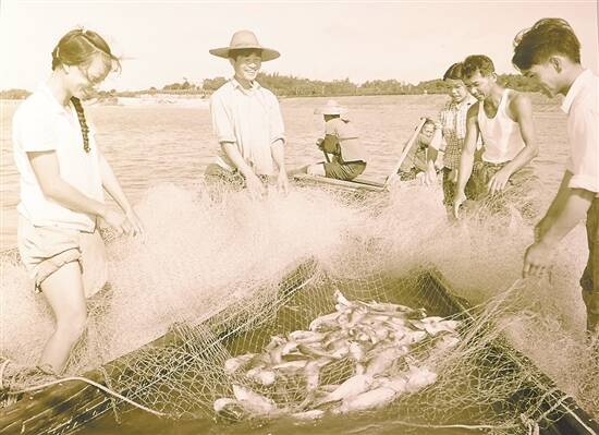 改革开放前,东莞是香飘四季的农业县,图中是道滘渔民捕鱼场景