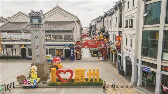 水东街是连接桥西惠州府城和桥东归善县城、形成惠州“一街挑两城”古城格局的重要通道,素有“东江首埠”“千年商埠”之美誉,是省级历史文化街区,第二批国家级夜间文化和旅游消费集聚区、国家级旅游休闲街区。
