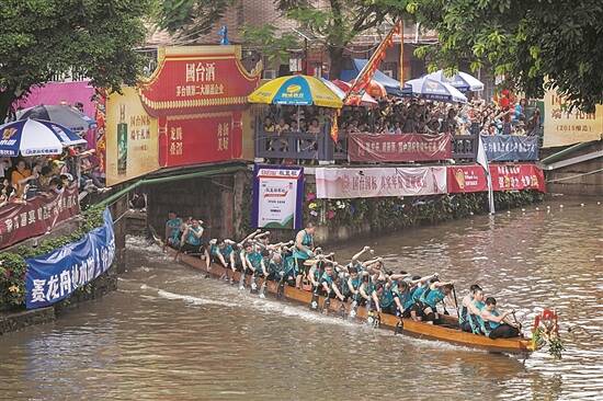 中山古镇龙舟赛:5月31日,中山古镇中心大河十三桡龙舟赛竞赛。