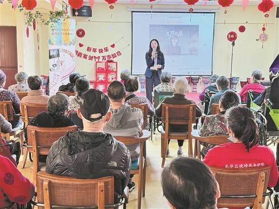 中行工作人员在养老服务中心用方言介绍典型骗局