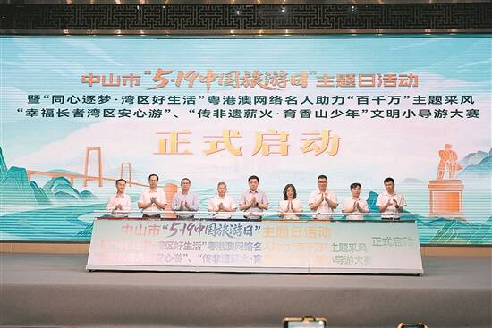 5月19日,中山市联合珠海市,联动香港、澳门、深圳旅游行业社会组织和省市网络社会组织举行的“5・19中国旅游日”主题日活动在中山市大涌红博城启动。这是中山市构建11138文旅大格局,推动“跨部门联动、跨区域协作、跨群体覆盖”的文旅融合创新实践。活动中,珠中联合推出“幸福长者湾区安心游”线路等八项活动,全面促进旅游产业发展,提升城市“人间烟火气 湾区好生活”美好文旅形象,助力“百千万工程”。