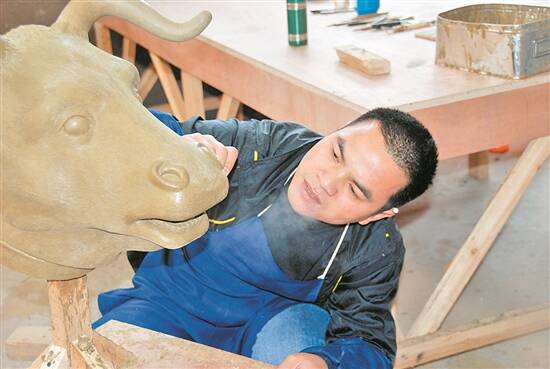 韦其秋为电影《十二生肖》制作道具 受访者供图