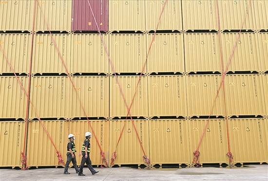江门海关关员在高沙港开展现场巡查 陈艳冰 摄