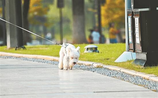 外出遛狗时要拴好狗链