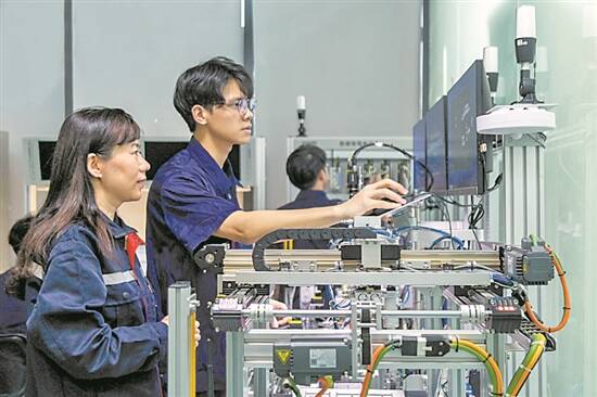 “学校按照专业、课程、教学分别与产业、职业、生产对接的原则,及时将新业态、新技术、新工艺、新工具纳入教学内容,使新产业有新人才可用、新人才有新产业可就业。”苗宁礼说,学校拓展产教融合广度、丰富产教融合维度、加强产教融合深度,构建校企共谋专业规划、共做课程开发、共建教学团队、共施学业评价等“十共”机制,培养数智型、复合型、创新型、应用型的“四型”技术人才。