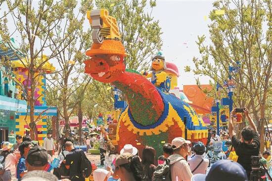着眼大湾区,7月6日,深圳乐高乐园度假区最大单体建筑“乐高乐园创想世界”也成功封顶,标志着该主题乐园建设取得关键进展,同样引发欢呼。这个夏天,“乐园经济”以“乐高”之名,彰显出其话题热度和吸金实力,诠释着“区域经济新引擎”这一的重要角色。