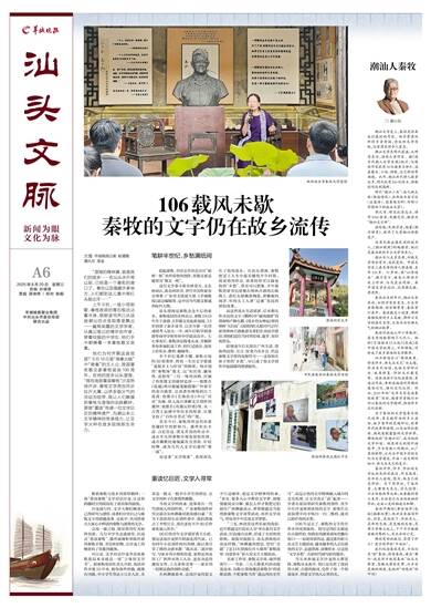 秦牧作品选入中小学教材,其文学经验影响了几代人。他的《艺海拾贝》《土地》《花城》在中国文学地图上,不断隆起,同时成了故乡澄海的文学徽章。